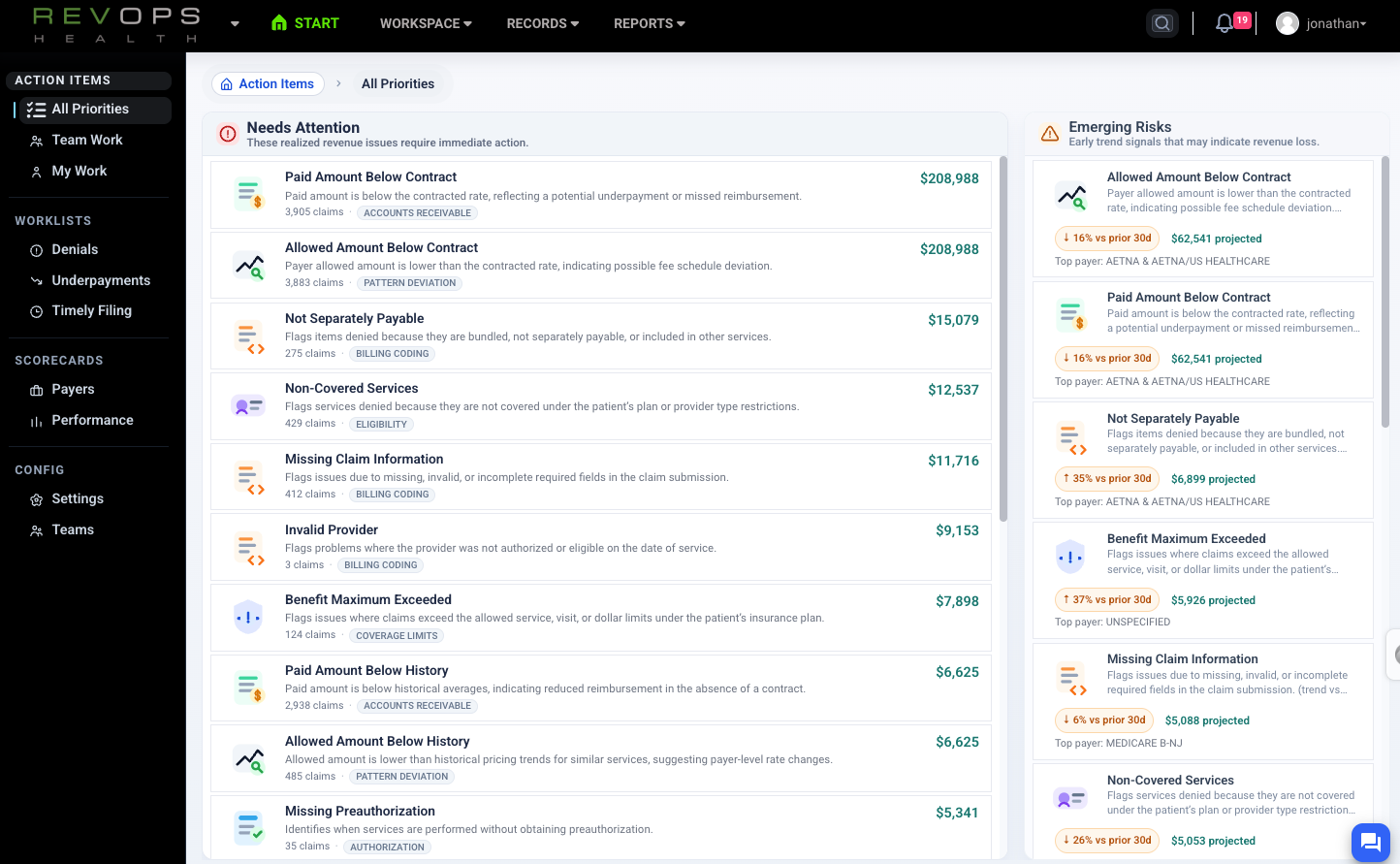 Clearinghouse and PM analytics reflect only their narrow view of the workflow—often focused on claim submission success, not payment accuracy. RevOps analyzes outcomes contextually, identifying anomalous behavior, underpayments, delays, and inconsistencies across similar claims. Think spellcheck versus grammar check.